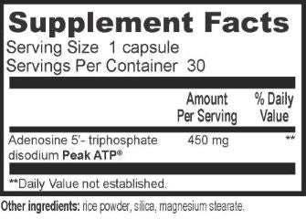 Take one 450mg capsule of PEAK ATP® ~ 30 to 60 minutes before exercise as a “pre-workout.”