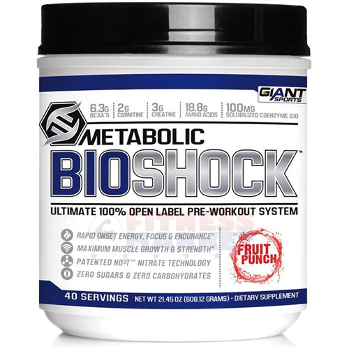 Giant Sports Metabolic Bioshock is everything you need in a pre-workout supplement to power your mind and your body – all in validated, effective and fully disclosed doses. So if you value your time while training and want to make maximum progress each and every time you do, then you won't settle for anything less. You will insist on the very best pre-workout supplement possible. You will insist in Metabolic Bioshock.